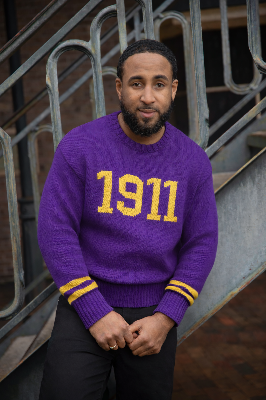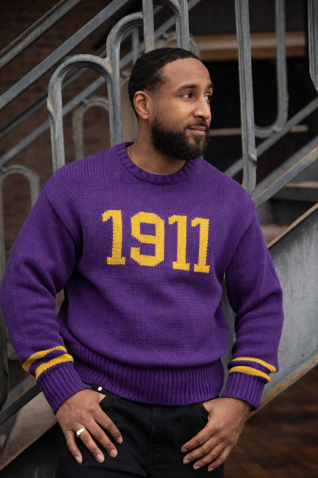 The Purple 1911 Sweater is a bold tribute to the legacy and excellence of Omega Psi Phi Fraternity, Inc.® Crafted in a rich royal purple knit, this sweater proudly features gold “1911” lettering across the chest, honoring the founding year of Omega Psi Phi. Gold varsity-style sleeve stripes add a classic collegiate touch, while ribbed detailing at the collar, cuffs, and hem provides a clean, structured finish.