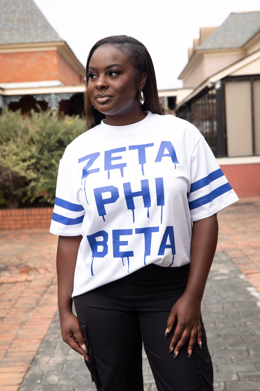 Make a bold statement with this Zeta Phi Beta Boxy Drip Tee, designed for effortless style and standout sorority pride. Featuring a modern boxy fit, this tee offers a relaxed silhouette with a slightly cropped length for a contemporary, street-inspired look.