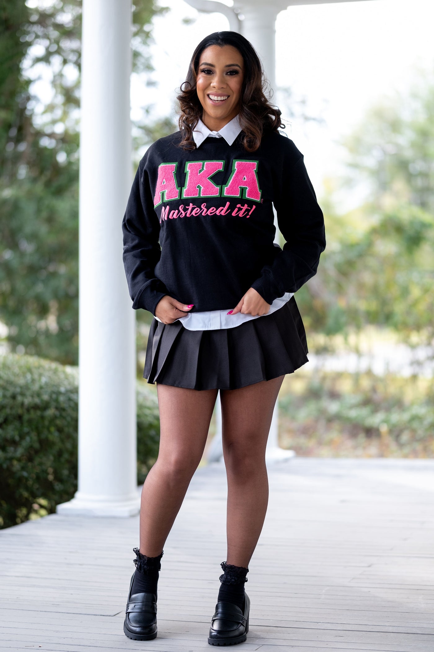 You asked and we delivered. Our Pretty Educated Collection is here! This AKA sweatshirt features chenille patches that you love.